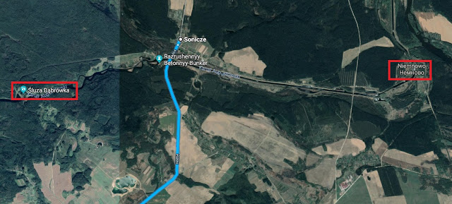 – jedziemy na zachód, ładną asfaltową drogą na Śluzę Dąbrówka (ładnie zagospodarowany teren, można wypożyczyć rowerek wodny, albo niedrogo popływać motorówką)