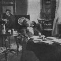 Zaostrowiecze 1932 r., po uroczystościach 3 Majowych. Spotkanie przy domu felczera Dodzia.Stoją pierwsze trzy z lewej, nauczycielki – siostry Romanowskie: Wiera, Natalia, Lola. Dalej nauczycielki: Władysława Podgóreczna i Jodko Narkiewiczowa. Stoi w mundurze z 5 – letnim synem Marianem, ppor. rez. Józef Podgóreczny, kierownik szkoły. Naprzeci nauczyciel Władysław Jodko Narkiewicz. Stoi z laską Legionista, osadnik wojskowy i inwalida wojenny, kawaler Orderu VM Siewruk.