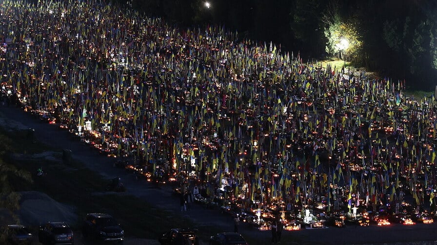 Żołnierska kwatera na Cmentarzu Łyczakowskim wieczorem. Fot: city-adm.lviv.ua