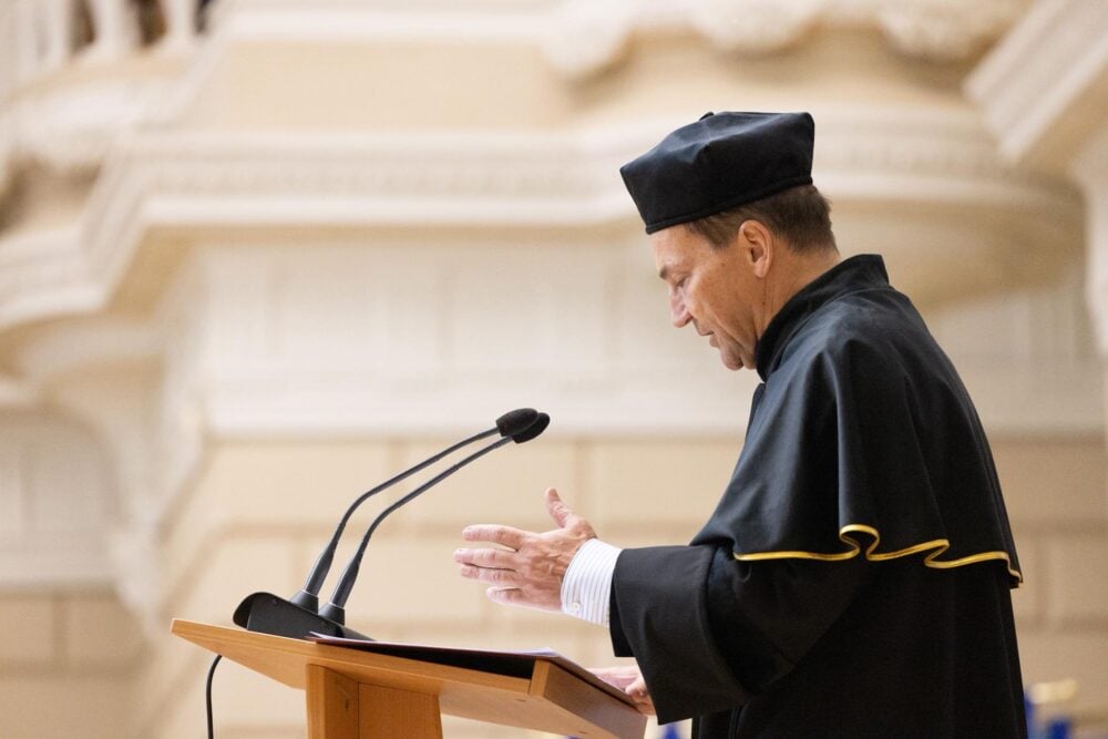 Wicepremier i szef polskiego MSZ Radosław Sikorski otrzymał tytuł doktora honoris causa Lwowskiego Uniwersytetu im. Iwana Franki. Dziekan Wydziału Stosunków Międzynarodowych, prof. Markijan Malski, nazwał polskiego ministra „jednym z najwybitniejszych dyplomatów współczesności”, podkreślając jego wkład w rozwój współpracy między Polską a Ukrainą oraz wsparcie udzielane Kijowowi od początku rosyjskiej inwazji.
